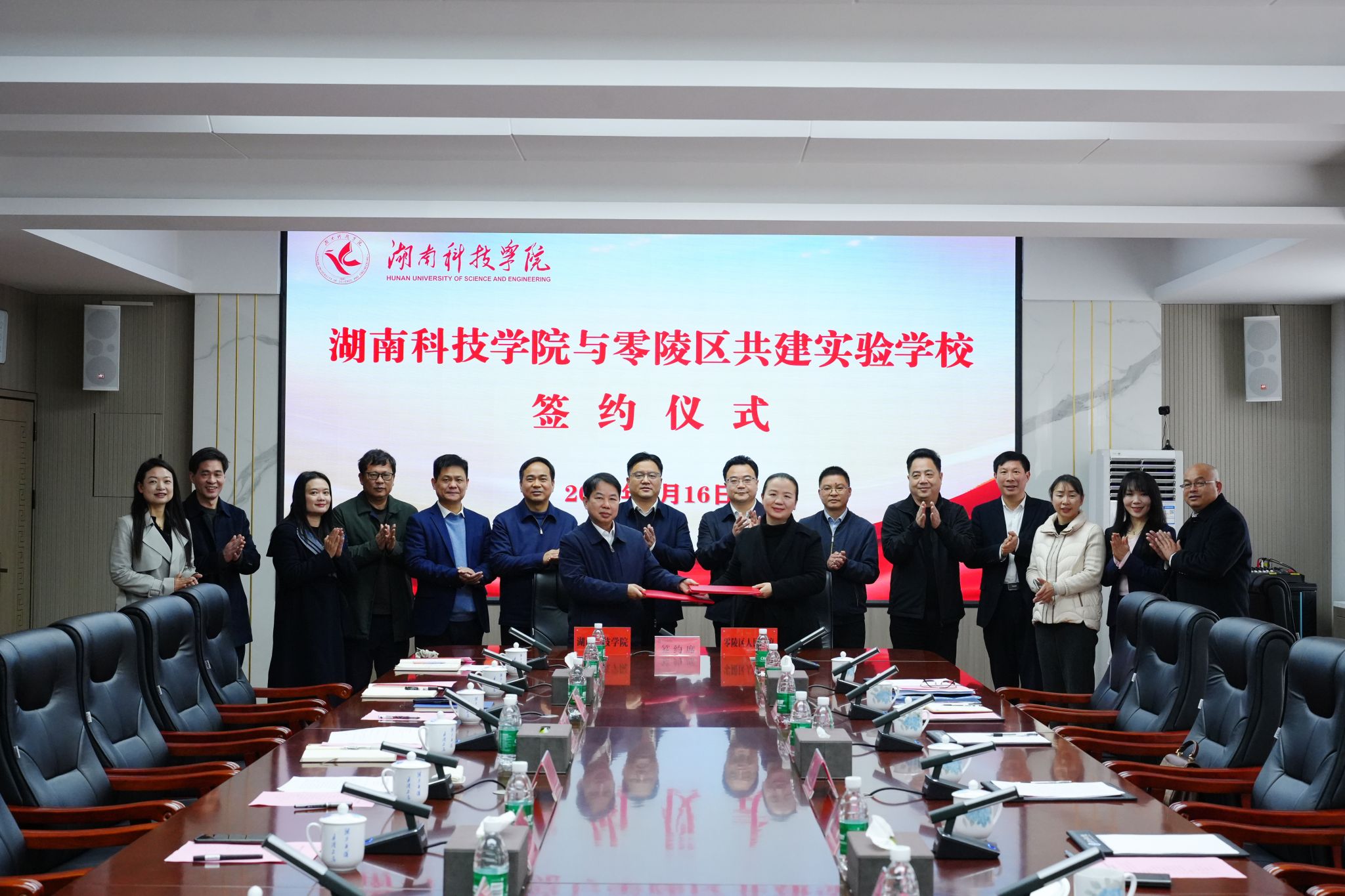 本网讯(记者 向薛峰 摄影 谢志豪)1月16日,学校举行与零陵区共建实验学校签约仪式,零陵区委书记赵立平,零陵区副区长秦明明,校党委书记李钢,党委副书记、校长黄创霞,校党委委员、副校长李常健等出席仪式,零陵区教育局、永州市柳子中学、永州市第九中学、零陵区杨梓塘小学相关负责人参加仪式,黄创霞主持仪式。