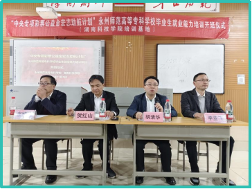 11月1日上午,中央专项彩票公益金"宏志助航计划"湖南科技学院培训基地第二期培训班在永州师范高等专科学校正式启动。本次培训汇聚了来自永州师范高等专科学校学前教育、早期教育、体育教育等十余个专业的314名学员,标志着湖南科技学院作为"全国高校毕业生就业能力培训基地"的辐射带动作用得到进一步加强。